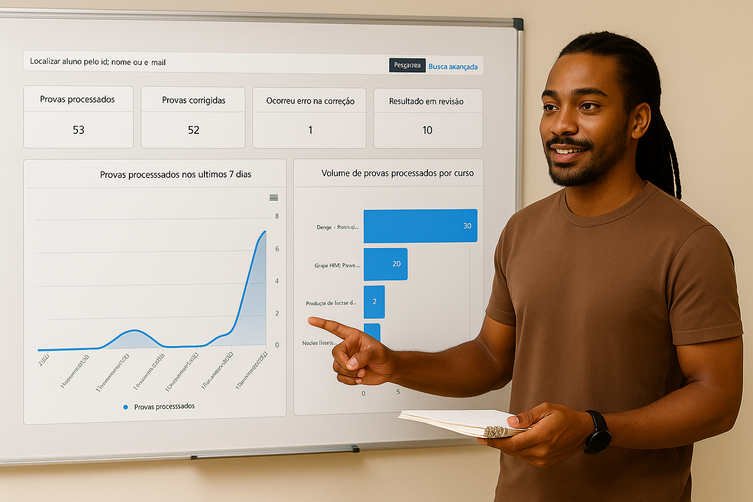 Esse monitoramento contínuo contribui para a segurança, a qualidade e a confiabilidade do processo de correção automática, ao mesmo tempo em que reduz a sobrecarga de trabalho dos docentes. Com o painel, a instituição passa a contar com uma ferramenta que não apenas executa a correção, mas também acompanha, valida e aprimora o processo de avaliação como um todo.