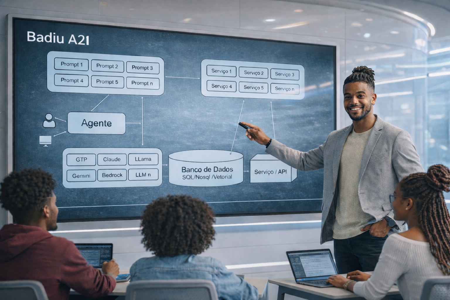 A plataforma Badiu A2I é um conjunto integrado de soluções voltado para a criação de agentes, prompts e automação de processos com o uso da inteligência artificial, incluindo integração com diversos modelos de linguagem (LLMs).