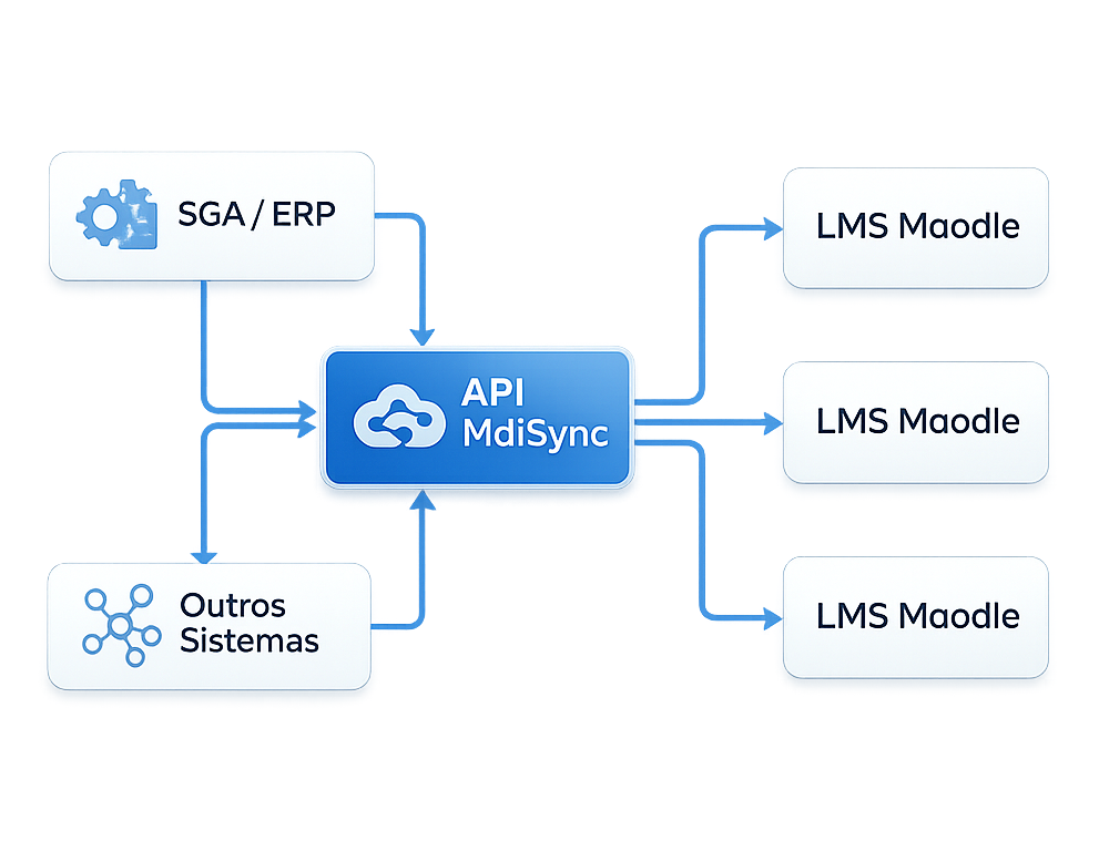 MdlSync é um web service criado para resolver um problema bem comum em instituições e empresas que utilizam o Moodle: quando existe mais de uma instância (às vezes de versões diferentes) e é necessário integrar tudo com um sistema externo, como um Sistema de Gestão Acadêmica, portal institucional, ERP educacional ou uma camada própria de integração.